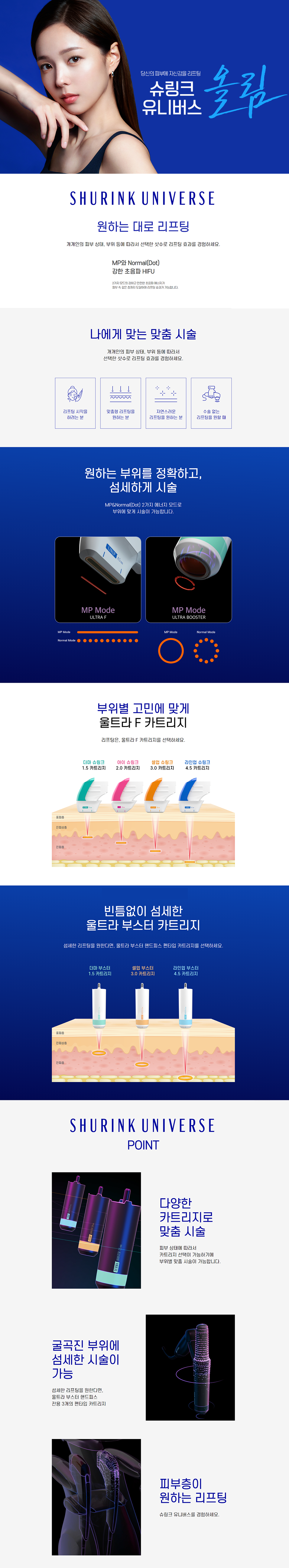 피부 속 깊은 곳의 근막층(SMAS층)에 열 응고점을 만들어 콜라겐 재생을 촉진하고, 늘어진 피부를 리프팅하는 효과를 목표로 합니다.