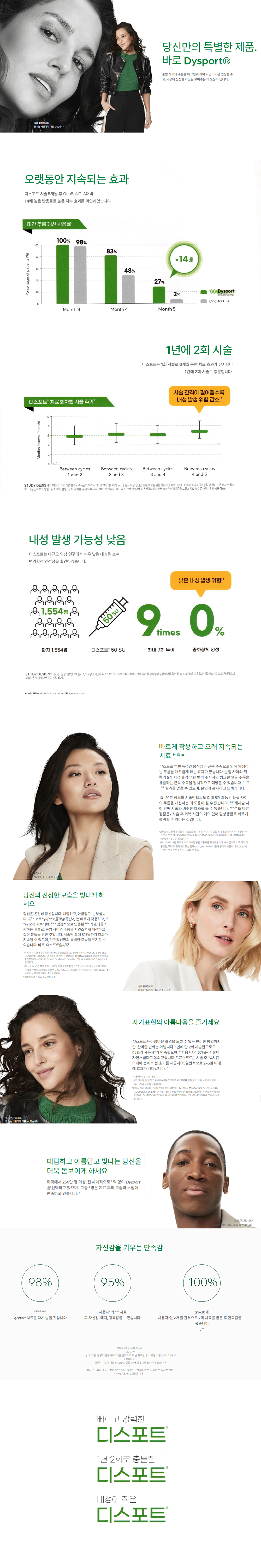 디스포트는 1회 시술로 6개월 동안 치료 효과가 유지되어 1년에 2회 시술로 충분한, 오래가는 보톡스입니다.