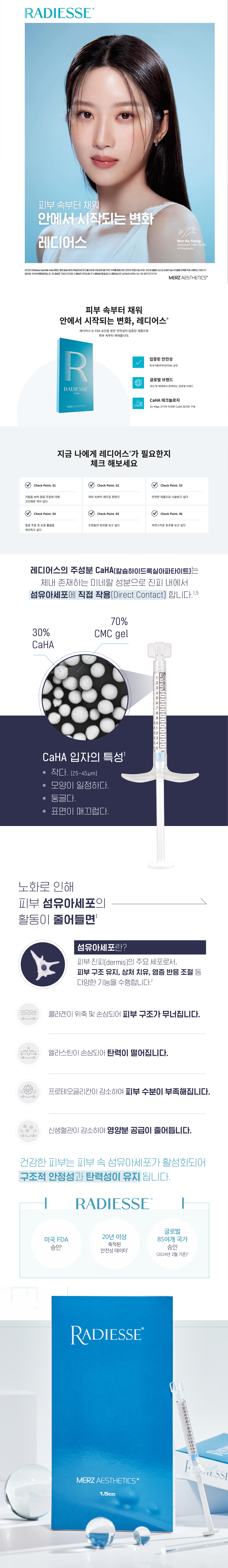 레디어스(Radiesse)는 칼슘 하이드록시아파타이트(CaHA) 성분을 활용해 강력한 자가 콜라겐 생성을 유도하는 프리미엄 콜라겐 부스터입니다.
